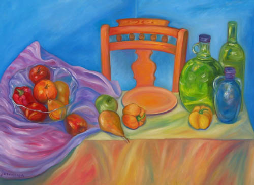 Still Life with Fruit, Bottles
